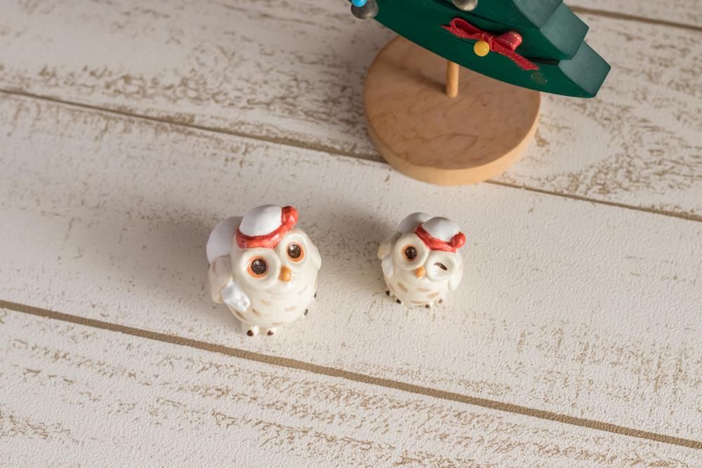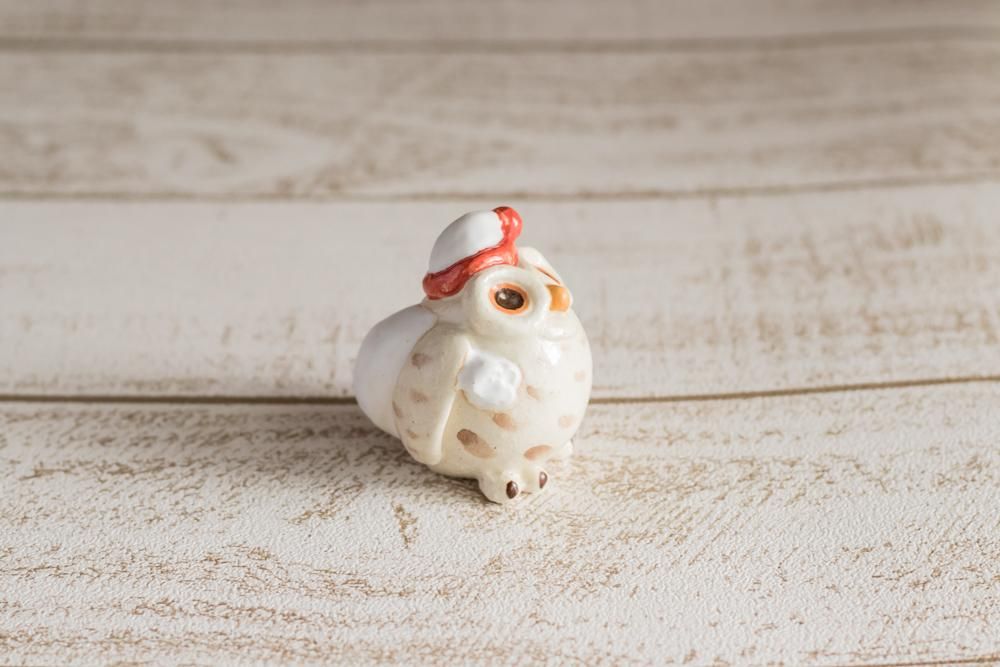 コロンと丸いシロフクロウのサンタさんです。 ふくよかなお腹にいっぱい福をつめて、 プレゼントのたくさん入った袋をしょっています。 後ろ姿も白い雪玉のように可愛いですよ。 クリスマスツリーと一緒に、 窓際に飾ってお客様をお出迎えに、 クリスマスカラーでお部屋がいっきに冬の雰囲気になります。 フクロウは昔から 不苦労(くろうしない) 福籠(ふくがこもる) 福朗(ふくふくしく ほがらか) など、とても縁起の良い生き物とされてきました。 プレゼントと一緒に福も届けてくれますように。 サイズ:(大)高さ4.5cm×横5cm×奥行き6cm 素材:陶器製